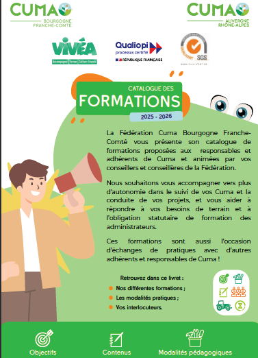 Ces formations sont proposées aux responsables et adhérents de Cuma et animées par vos conseillers et conseillères de la Fédération.
