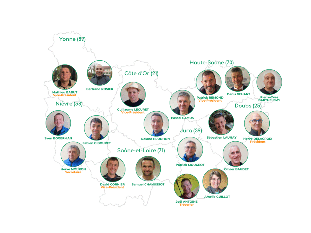 Notre Conseil d’administration compte à ce jour 2 ou 3 administrateurs par département, pour 19 en tout sur l’ensemble de la région Bourgogne Franche-Comté. Tous sont fortement engagés dans une ou plusieurs Cuma. Consultez leurs profils en bas de la page.