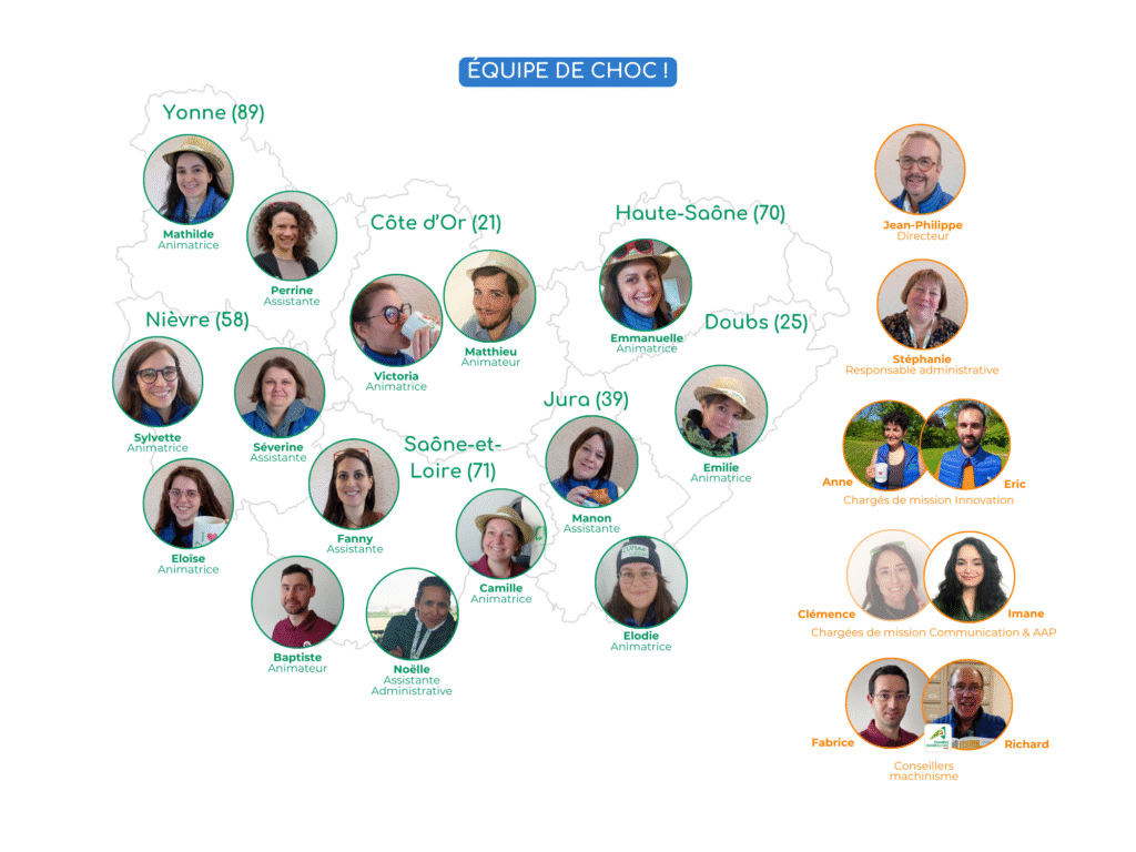 Notre équipe est composée de 21 salariés au service des Cuma et du réseau. Retrouvez nos coordonnées dans les fiches ci-dessous par département.